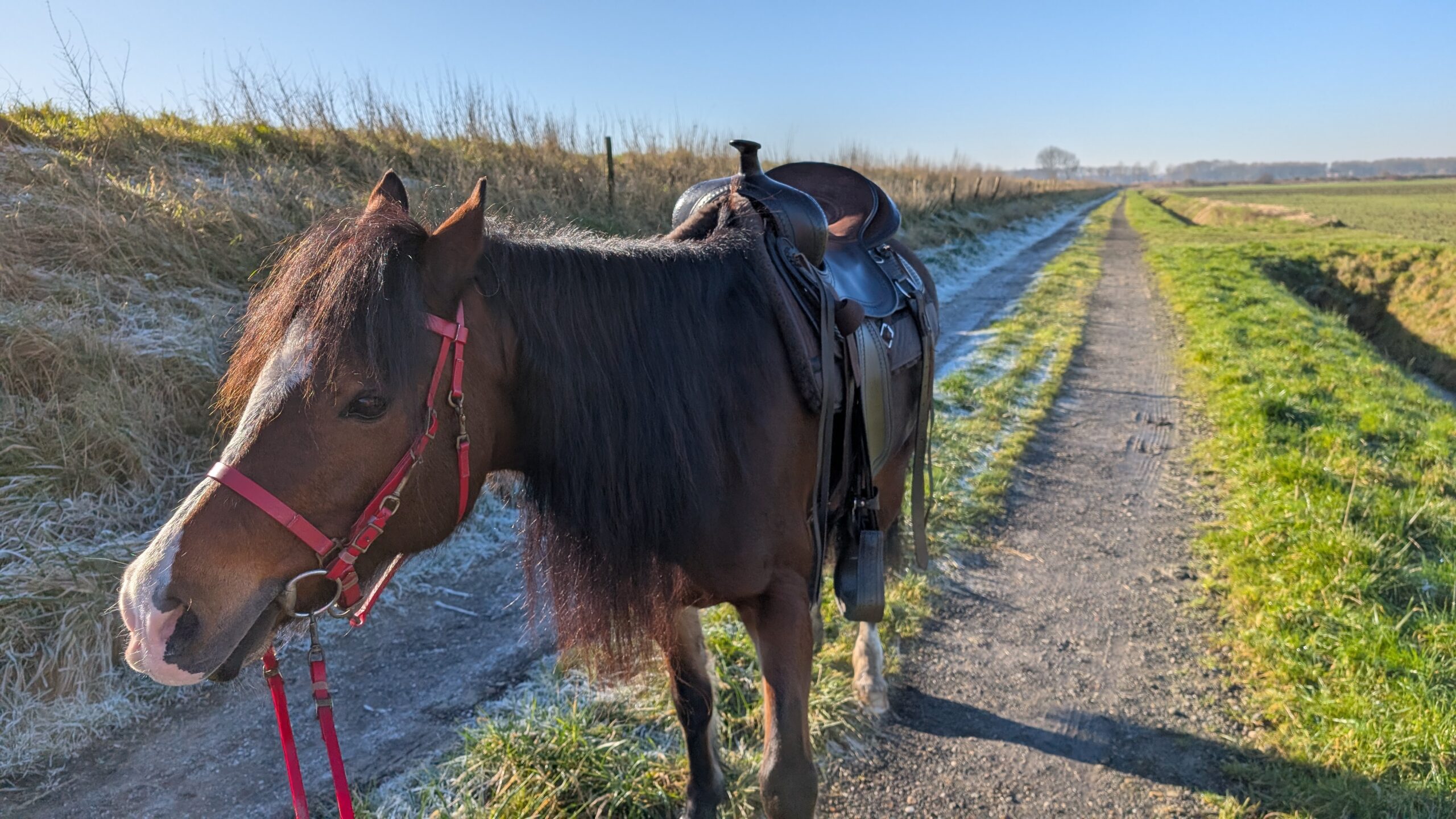 De temperatuur dook s’nachts onder nul, waardoor de ochtend er magisch uitzag. Tel daar ook nog een winters zonnetje bij op en je hebt het perfecte moment om een heerlijk ritje te gaan doen. Dat was dan ook precies wat Mems en ik besloten te doen!